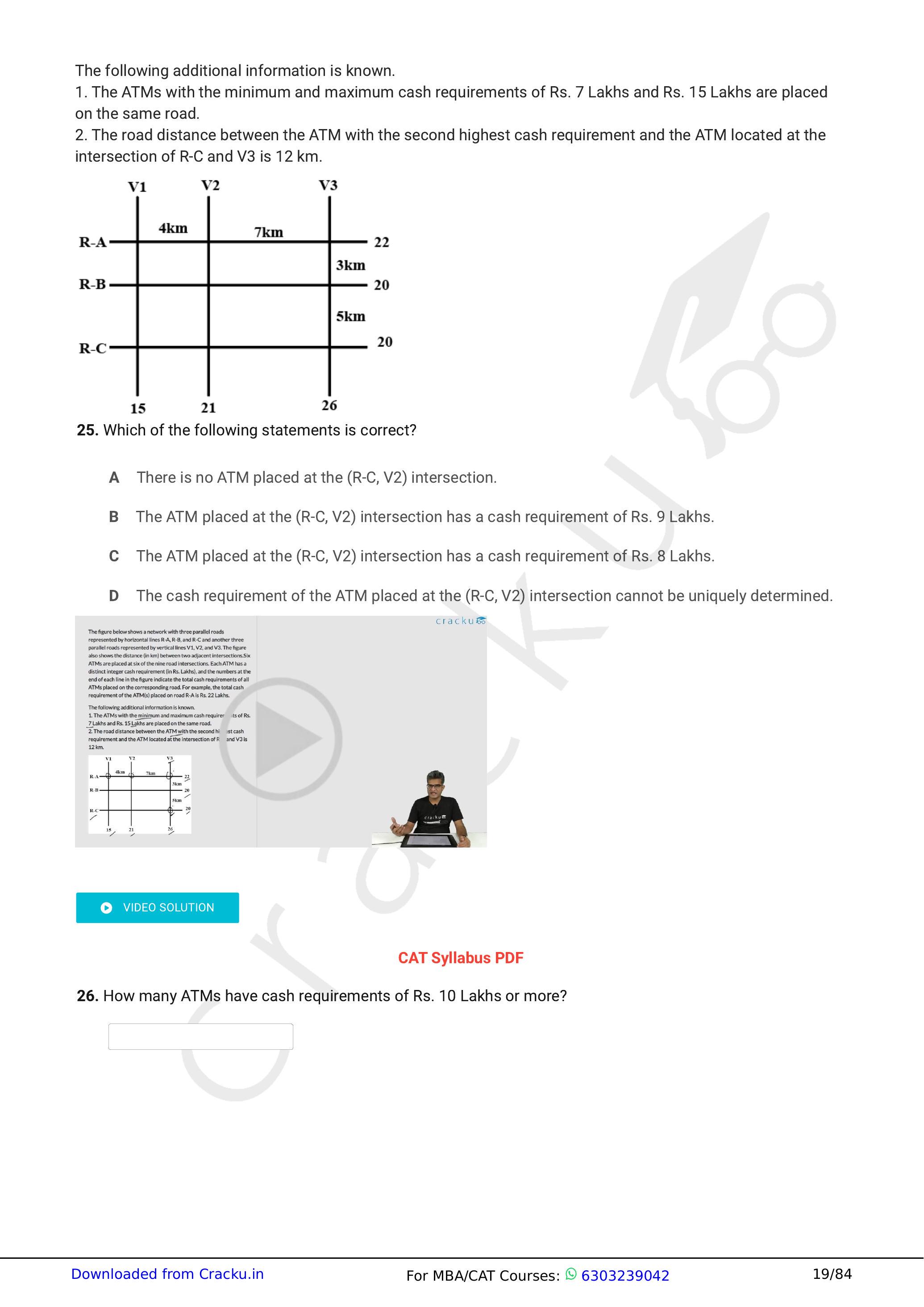 The ATMs with the minimum and maximum cash requirements of Rs. 7 Lakhs and Rs. 15 Lakhs are placed on the same road.