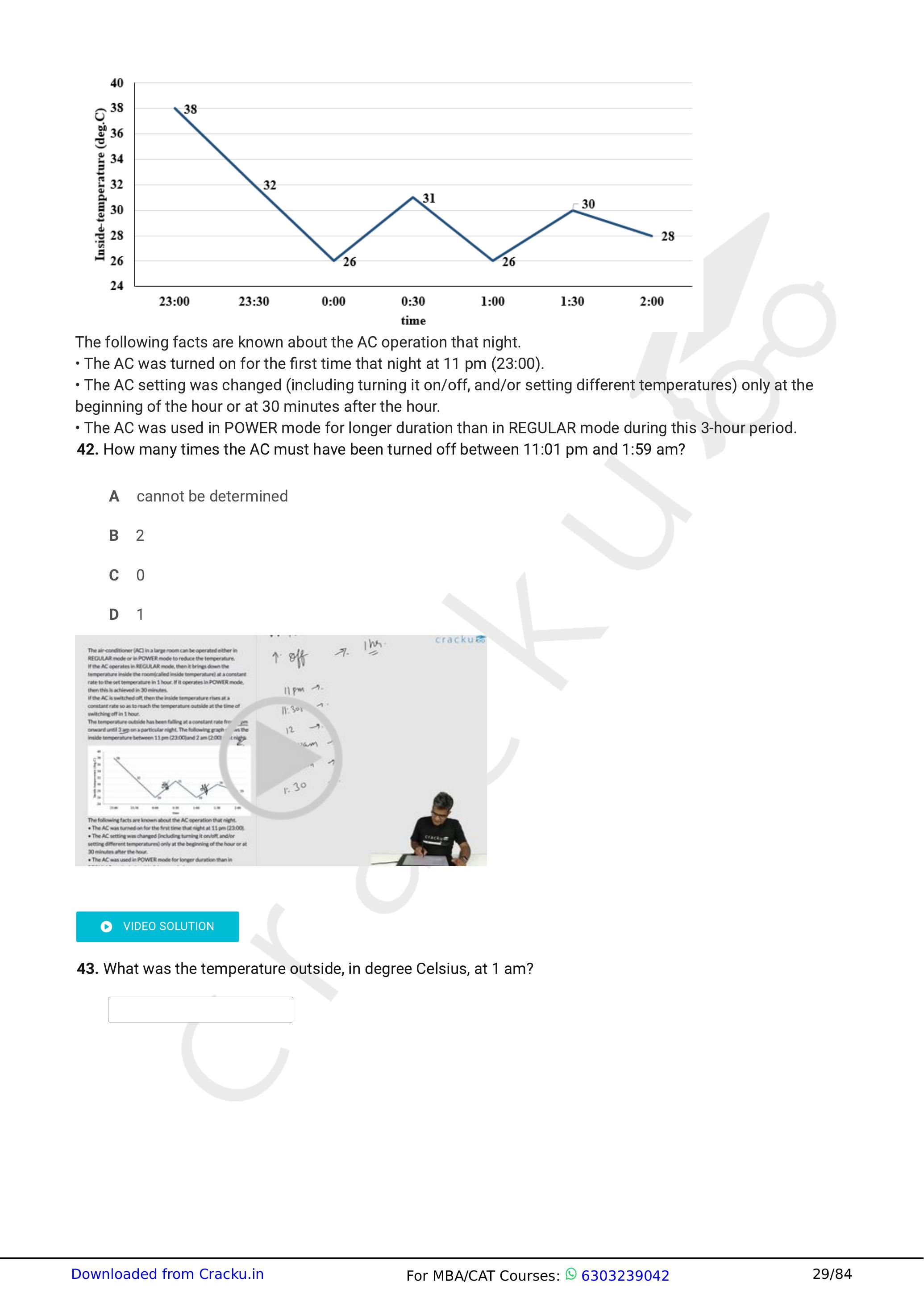 If the AC operates in REGULAR mode, then it brings down the temperature inside the room(called inside temperature) at a constant rate to the set temperature in 1 hour. If it operates in POWER mode, then this is achieved in 30 minutes.